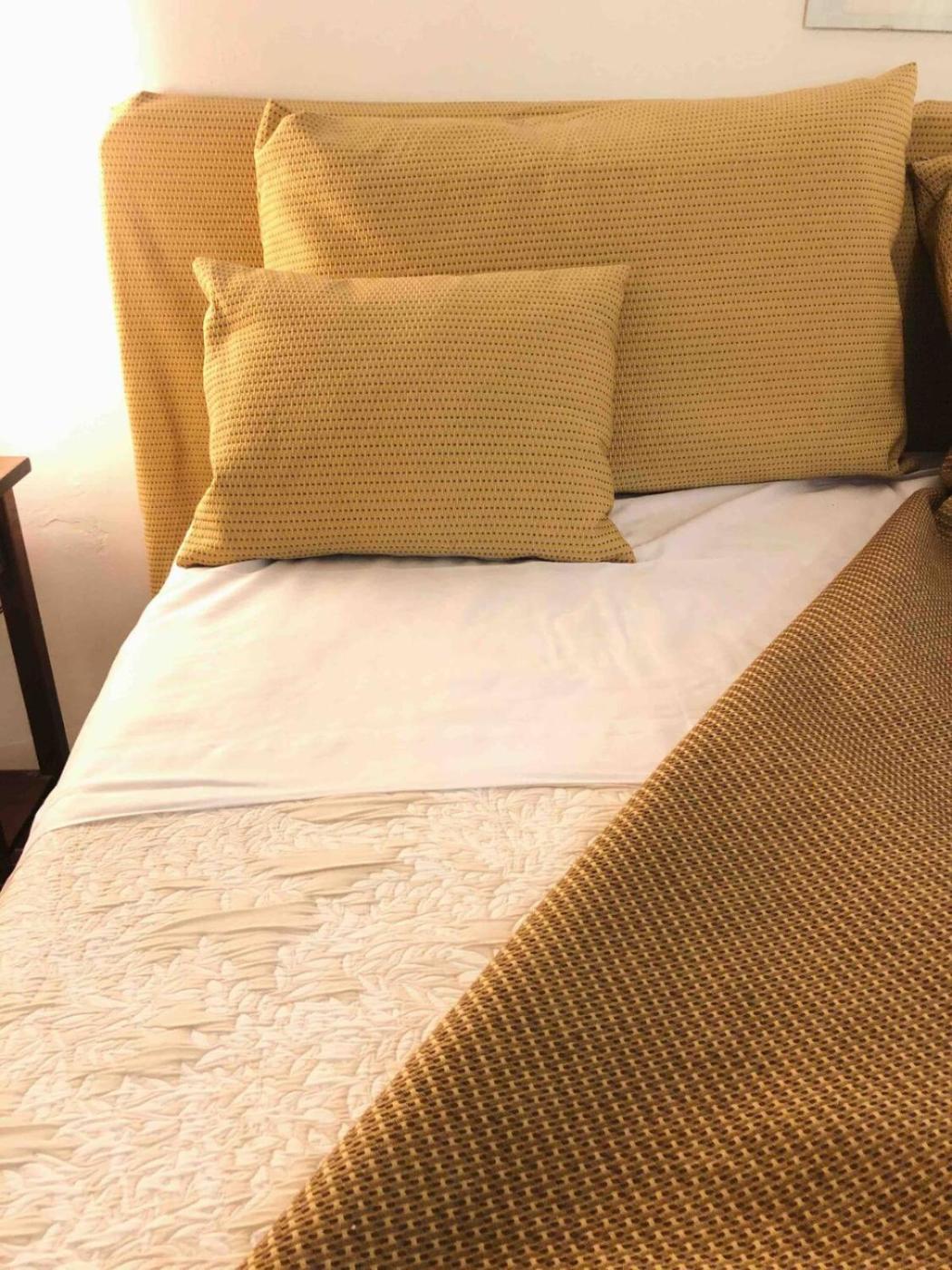 Towels and bed linen are featured in the guest house.