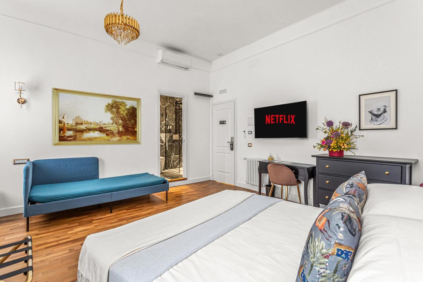 Featuring a shared lounge and views of city, Blue Prestige Suites is a recently renovated guest house located in Rome, less than 1 km from Ottaviano Metro Station. Among the facilities at this property are a lift and a shared kitchen, along with free WiFi throughout the property. The guest house features family rooms.